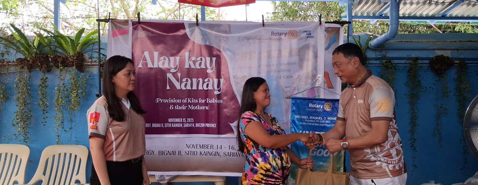 The Rotary Club of San Juan Neopolitan's strong conviction that service must be constant, inclusive, and purposeful is at the core of our ten-year journey. Year after year, the club has come back to build relationships, learn problems, and come up with long-term solutions in addition to giving. Under its direction, Biyaya sa Sariaya developed into a potent seven-in-one community empowerment program that included Project WASH, Agapay sa Karunungan, Ligtas ang May Alam, Alay kay Nanay, Aruga kina Lolo at Lola, Dagat Mo Mahal Ko, and Gulay ng Buhay into a single, comprehensive outreach initiative that was successfully conducted on 10 November 2025.
