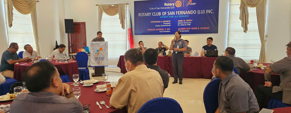 The Rotary Club of San Fernando La Union (RCSFLU) held its 24th regular meeting on March 18, 2025 at the Clubhouse, Thunderbird Resort, featuring Jail Senior Inspector Cherry Jane Reparip from the Bureau of Jail Management and Penology (BJMP) – La Union as the guest speaker.